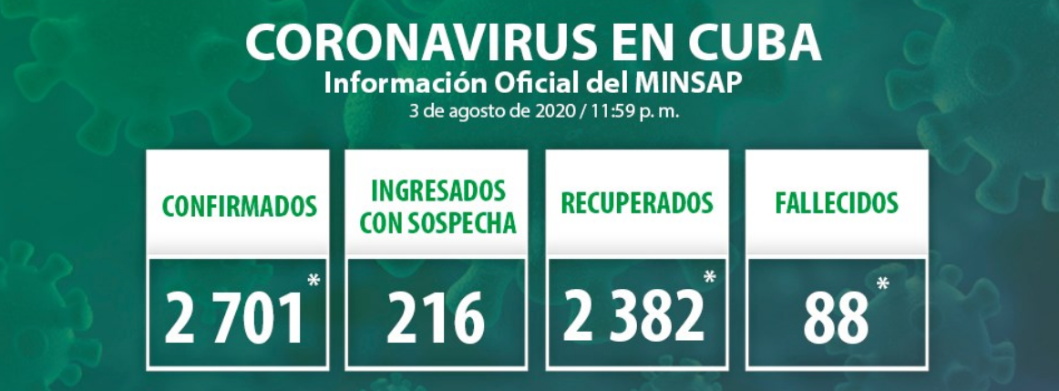 • Ciudadano cubano de 83 años residente en el municipio Habana del Este, provincia La Habana. No se precisa la fuente de infección. Se mantienen en vigilancia 9 contactos.