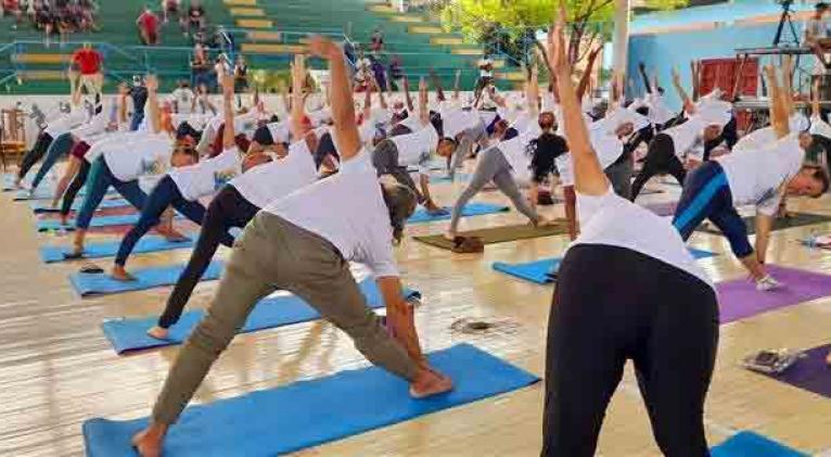El embajador de la India, Doctor Sarvesvaran Janakiraman y el vicepresidente del Instituto de Deportes y Recreación, Raúl Fornes, presidieron la celebración que incluyó danzas típicas de la nación surasiática y una sesión de ejercicios que dirigieron los maestros Purit Kumar (indio) y Eduardo Pimentel (cubano).