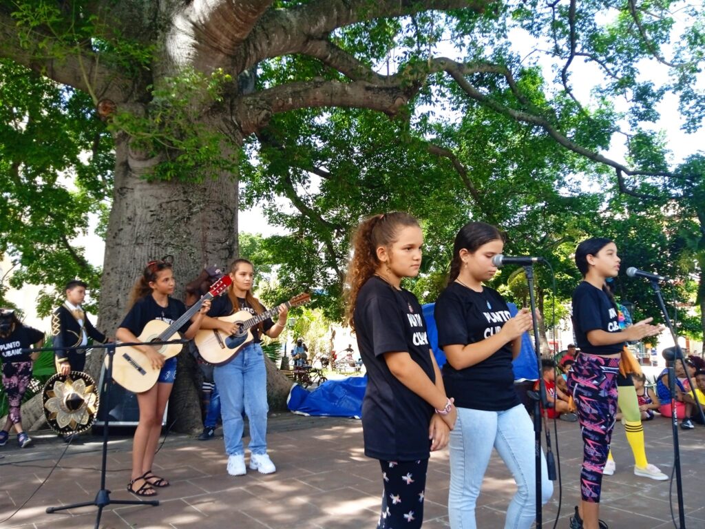 El principal escenario fue el parque central que acogió la presentación de los proyectos Estrellitas del Futuro, dirigido por la instructora de arte Emiyensi Ramírez Arnao y el del Punto Cubano de la Casa De La Décima de Mayabeque, a cargo de Lázaro Palenzuela Campos.
