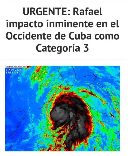 Mayabeque, Cuba: El huracán Rafael ha continuado ganando en organización e intensidad en la mañana de este miércoles a medida que se acerca a la Isla de la Juventud y a la parte Occidental de Matanzas en las inmediaciones de la Ciénaga de Zapata.