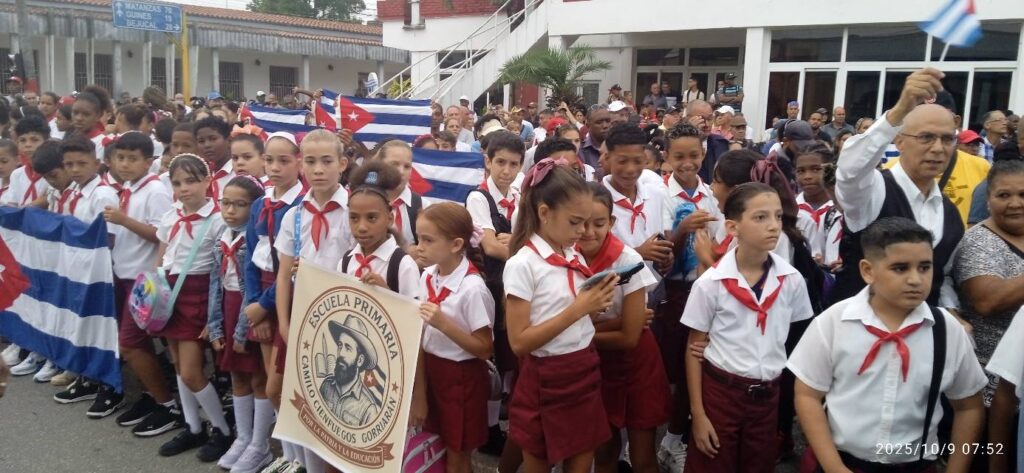 El respaldo de alumnos y profesores de la escuela primaria Camilo Cienfuegos en esta plaza patentizó una vez más la solidaridad con el pueblo amigo, “no estamos de acuerdo con la injerencia en el país ni con la guerra, abogamos por la paz mundial” expresó la maestra Caridad Martínez Pelletier.