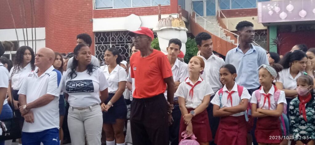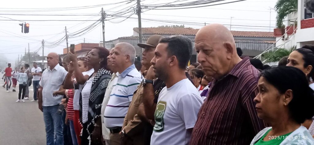 El secretario de la Unión de Jóvenes Comunistas (UJC), Fernando de la Mora Martín, expresó el sentir de todos los que se unen a un grito que sacude la conciencia de la humanidad, se refiere a niños, niñas, madres y todo un pueblo que es masacrado y conviven en una amenaza constante.