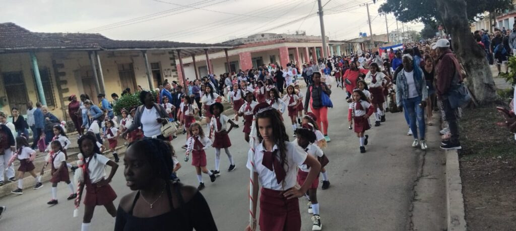 La jornada concluyó con bandas rítmicas en el parque central de Güines, organizadas por varias escuelas del territorio, además de una conga que llenó de alegría, música y colorido el cierre de la celebración, reafirmando el compromiso de la juventud con la obra y el pensamiento de José Martí.