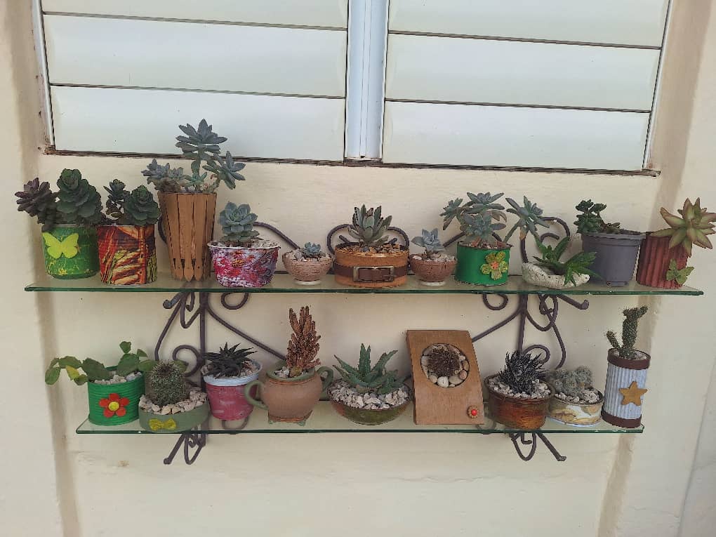 Al adentrarse, se descubre una de las pocas viviendas en Melena del Sur donde la mayoría de los adornos son artesanales. La magia se manifiesta en sonajeros, atrapasoles, árboles y flores de la vida; en madera, botones, cuero, cristales, piedras y lámparas creadas con materiales reciclados, todo con un estilo vintage que evoca vitrinas de elegantes museos.
