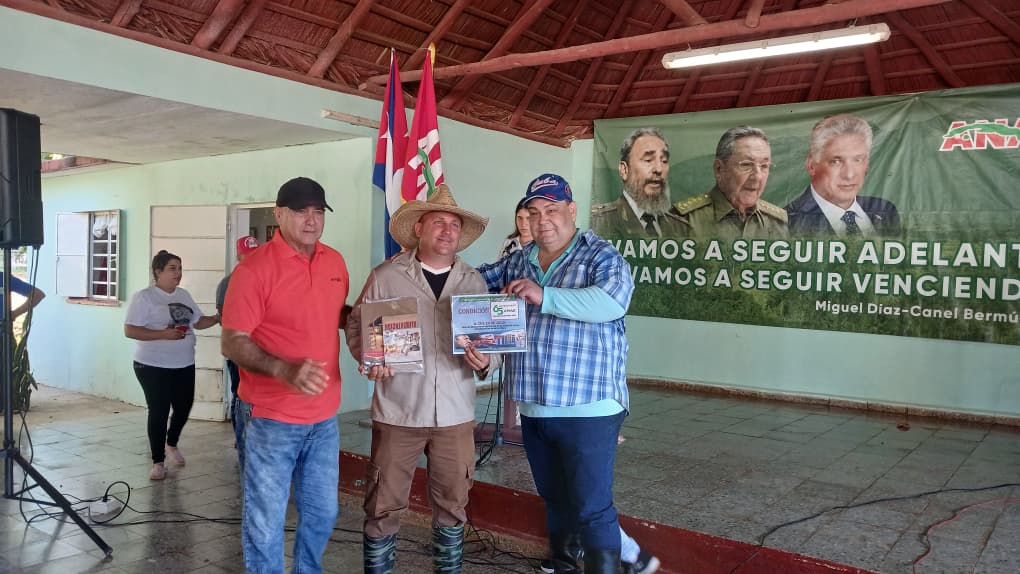 El programa incluyó un acto político-cultural en el que varias cooperativas del municipio recibieron la Condición 65 Aniversario de la ANAP, como reconocimiento a su trayectoria y aportes al movimiento campesino. En el mismo espacio se realizó, además, la entrega de carnés a nuevos militantes del Partido, gesto que reafirma la continuidad generacional y el compromiso político de la base agrícola.