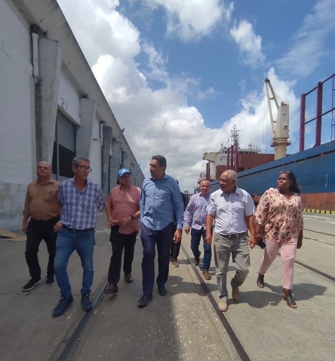 El titular también visitó la terminal portuaria Haiphong, en La Habana, perteneciente a la Empresa de Servicios Portuarios Occidente, donde intercambió con sus trabajadores sobre su salario, alimentación, medios de protección y de trabajo, y apreció la descarga de un buque de donativos de arroz, procedente de la República Popular China, con destino al pueblo, descarga que marcha según lo previsto.