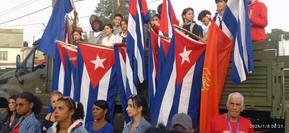En acto político para rememorar la entrada triunfal de Fidel a La Habana se escucharon las notas de los himnos nacionales de Cuba y la nación amiga, momento en el que se unieron sentimientos nobles y el luto por los 32 combatientes cubanos y los venezolanos que perdieron la vida en el cumplimiento sagrado del deber cuando impedían el arresto del presidente Nicolás Maduro y la primera combatiente Cilia Flores.