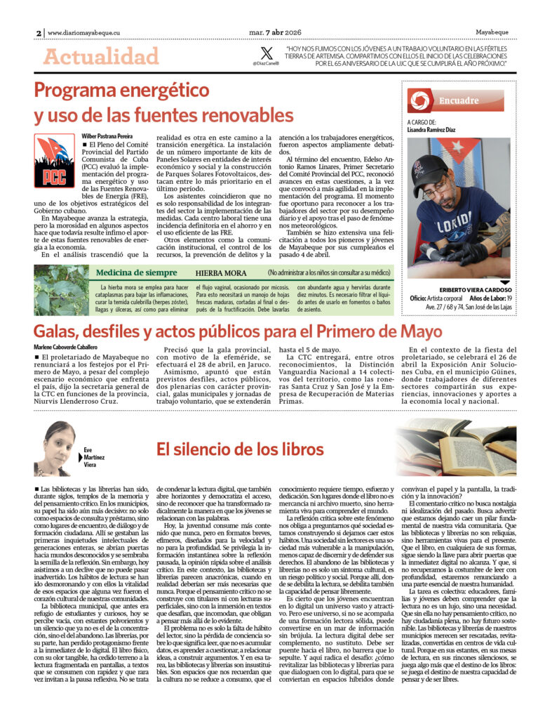 ED_8-BoletinDescarga Digital writing Equipo de redactores del sitio web de Radio Mayabeque Digital writing #molongui-disabled-link 28/01/2014 Palabras de apertura del General de Ejército Raúl Castro Ruz, Presidente de los Consejos de Estado y de Ministros de la República de Cuba en la II Cumbre de la Comunidad de Estados Latinoamericanos y Caribeños (CELAC), La Habana, 28 de enero de 2014 Digital writing #molongui-disabled-link 05/12/2015 Discurso pronunciado por el Comandante Fidel Castro Ruz, en el Parque Céspedes de Santiago de Cuba, el 1ro. de enero de 1959 Digital writing #molongui-disabled-link 06/12/2015 Discurso pronunciado por el Comandante Fidel Castro Ruz, en la ciudad de Santa Clara, el 6 de enero de 1959 Digital writing #molongui-disabled-link 07/12/2015 .Revolución Post navigation Protagonizan jóvenes de Güines jornada por el 4 de abril